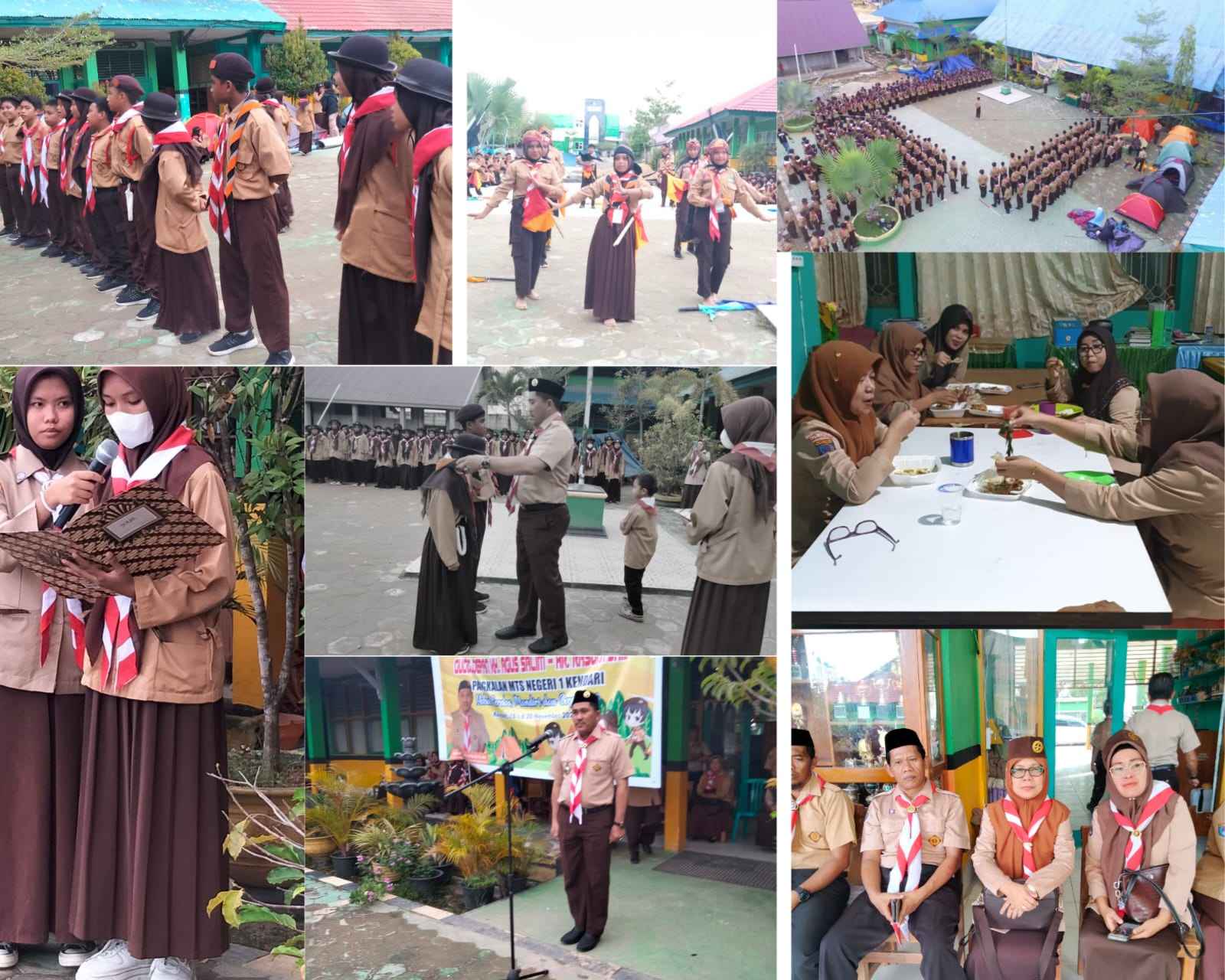 Kendari (Humas Sultra ) — Jumat sore (18/11/22) semarak semangat tampak di halaman Madrasah, para siswa berseragam pramuka lengkap. MTsN 1 Kendari , menggelar kegiatan kemah Blok di area Madrasah selama 3 hari, Jumat, Sabtu dan Minggu (18-20/11/22) kegiatan ini diikuti oleh 279 peserta kelas VII dengan Pembina Pramuka Naser. Upacara pembukaan kemah Blok menghadirkan seluruh guru dan tendik yang ikut serta dalam upacara kemah Blok tersebut. Kepala Madrasah Tsanawiyah Negeri 1 Kendari sekaligus ketua Mabigus Mappataliang. M.Pd,.M.A , membuka langsung kegiatan kemah Blok dalam amanat nya dia menjelaskan pendidikan kepramukaan merupakan ekstrakurikuler wajib diikuti oleh seluruh peserta didik kelas VII, sesuai program pramuka terkhusus kelas VII yang tadinya pelaksanaan kemah ini dilaksanakan dibulan agustus, baru dilaksanakan bulan ini (november ), di karenakan rutinitas kesiswaan yang begitu padat, beliau juga berpesan kepada ketua regu, bahwa setiap ketua regu wajib mengontrol anggotanya siapa yang ada, siapa yang tidak ada baik siang maupun malam, serta beliau juga berpesan waktu-waktu shalat jangan terlewati, apa yang menjadi aturan tatatertib, disiplin waktu, disiplin kegiatan harus ditaati dengan baik, agar bisa mewujudkan pribadi yang berkarakter mulia, patriotisme, jiwa nasional kebangsaan dan disiplin moral.selama kemah Blok yang berlangsung selama 3 hari. Para siswa mengikuti berbagai kegiatan yang digelar. Para pembina pun terlihat bersemangat bekerja sama untuk melaksanakan tugasnya dengan baik.
