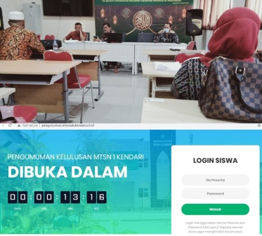 Kendari,(Humas Sultra) — Sebagai upaya mencegah kerumunan ditengah pandemi covid, kelulusan siswa Madrasah Tsanawiyah Negeri(MTsN) 1 Kendari diumumkan secara online melalui alamat website https://pengumuman.mtsnnsatukendari.sch.id, Walau pengumuman secara online adalah hal yang telah dilakukan beberapa tahun terahir ini, namun yang berbeda pada tahun ini adalah panitia memilih waktu pengumuman dimalam hari pada pukul 19.00 ,Jumat,04/06/2021. Dari 357 siswa yang mengikuti proses pembelajaran seluruhnya dinyatakan lulus 100%.